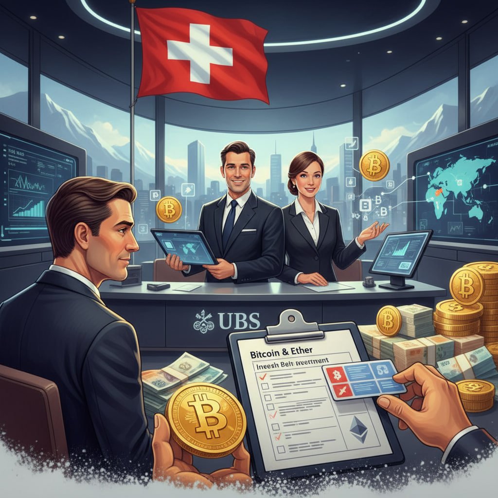 Swiss bank UBS is reportedly planning to let select private banking clients invest in Bitcoin & Ether, starting in Switzerland, by choosing external partners. This move highlights institutional appetite for digital assets and may expand to Asia-Pacific & the U.S. later.