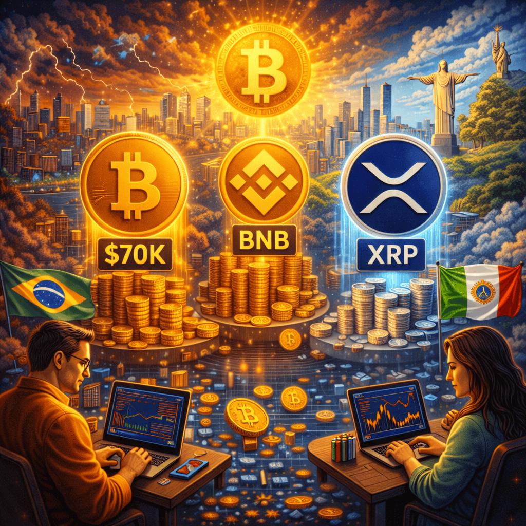 Market cap rankings shifted on Feb 8 as BNB briefly overtook XRP, while BTC retested $70,000 — a sign of shifting altcoin flows among Latin American traders amid broader market swings.