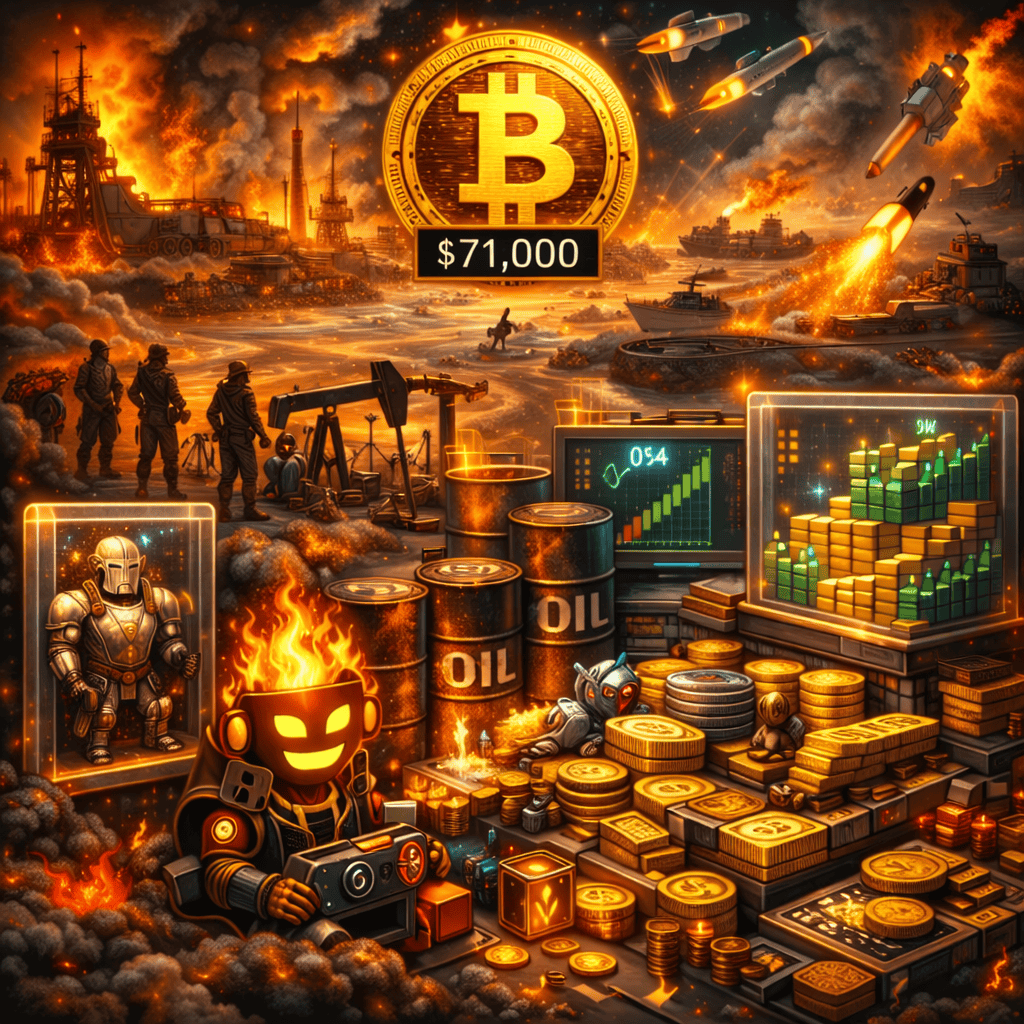 Bitcoin traded around $71,000 as investors monitored geopolitical tensions involving Iran and potential oil-market disruptions. Despite uncertainty, the cryptocurrency maintained weekly gains, supported by ETF inflows and institutional demand.