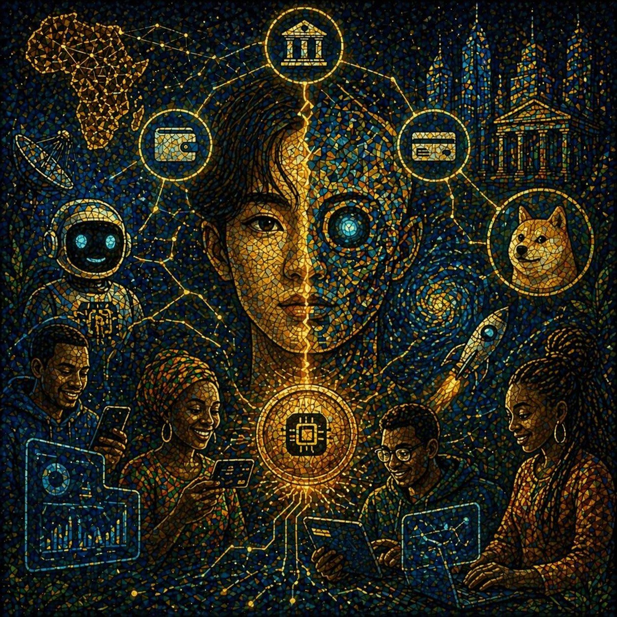 Every day one NFT is generated by AI on the basis of the news from 6 macro regions and digital world