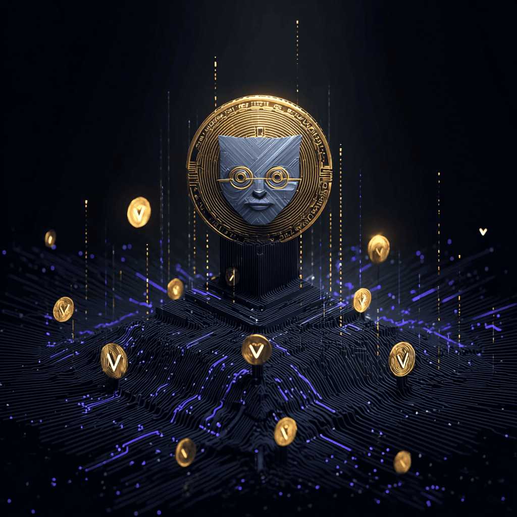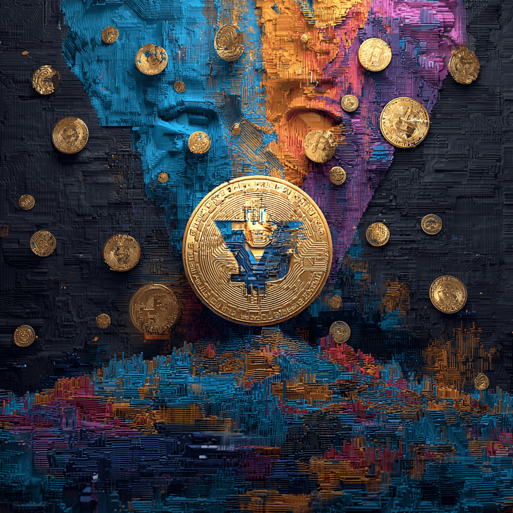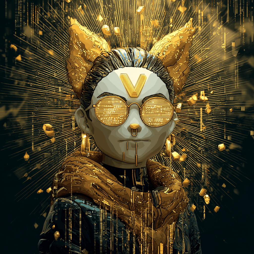 Golden light and code — a signal cuts through the noise, crypto’s calm warrior.