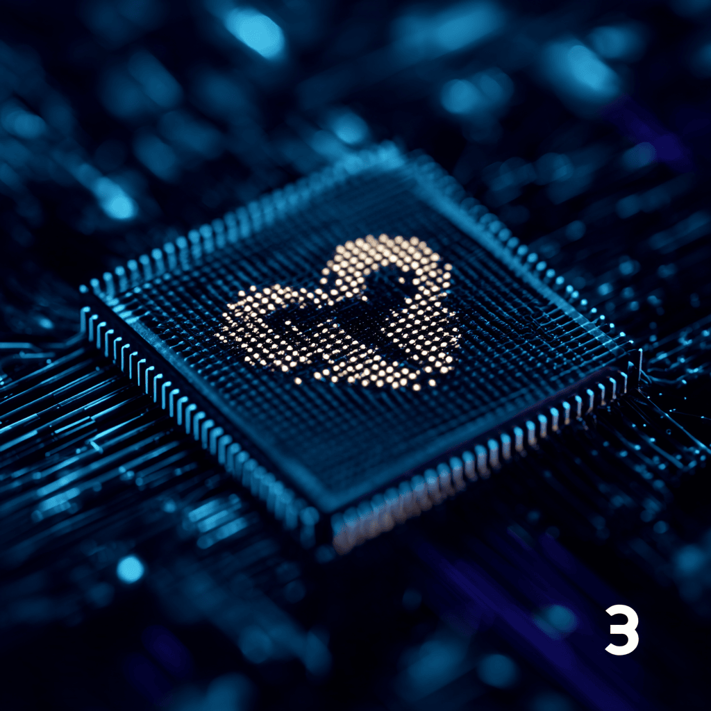Digital heart pulse, fingerprints etched in circuits — identity hums.