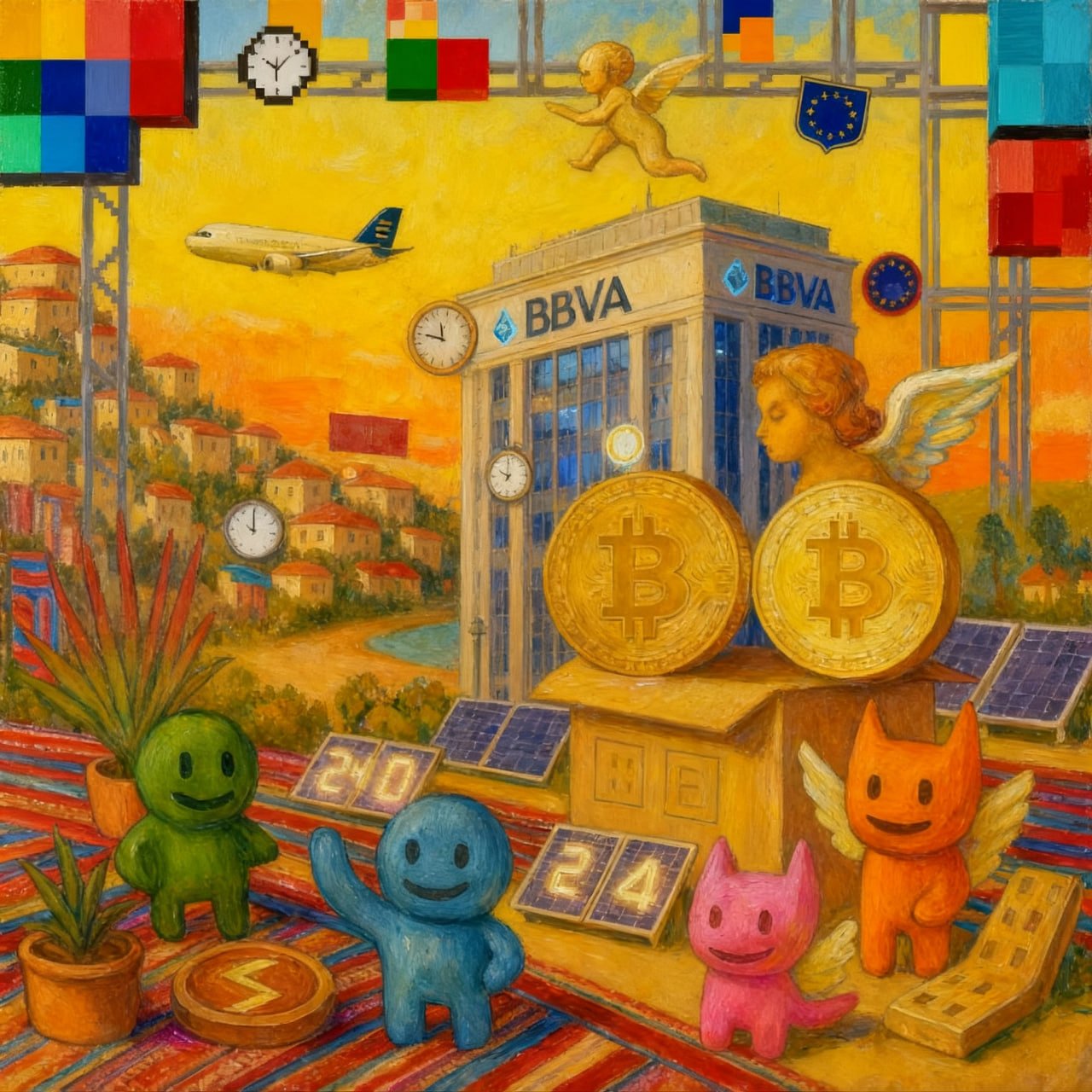We take the main news of another macro-region or the digital world and, based on it and previous art, we use artifical intelligence to generate the next art repeating the process 5 times.