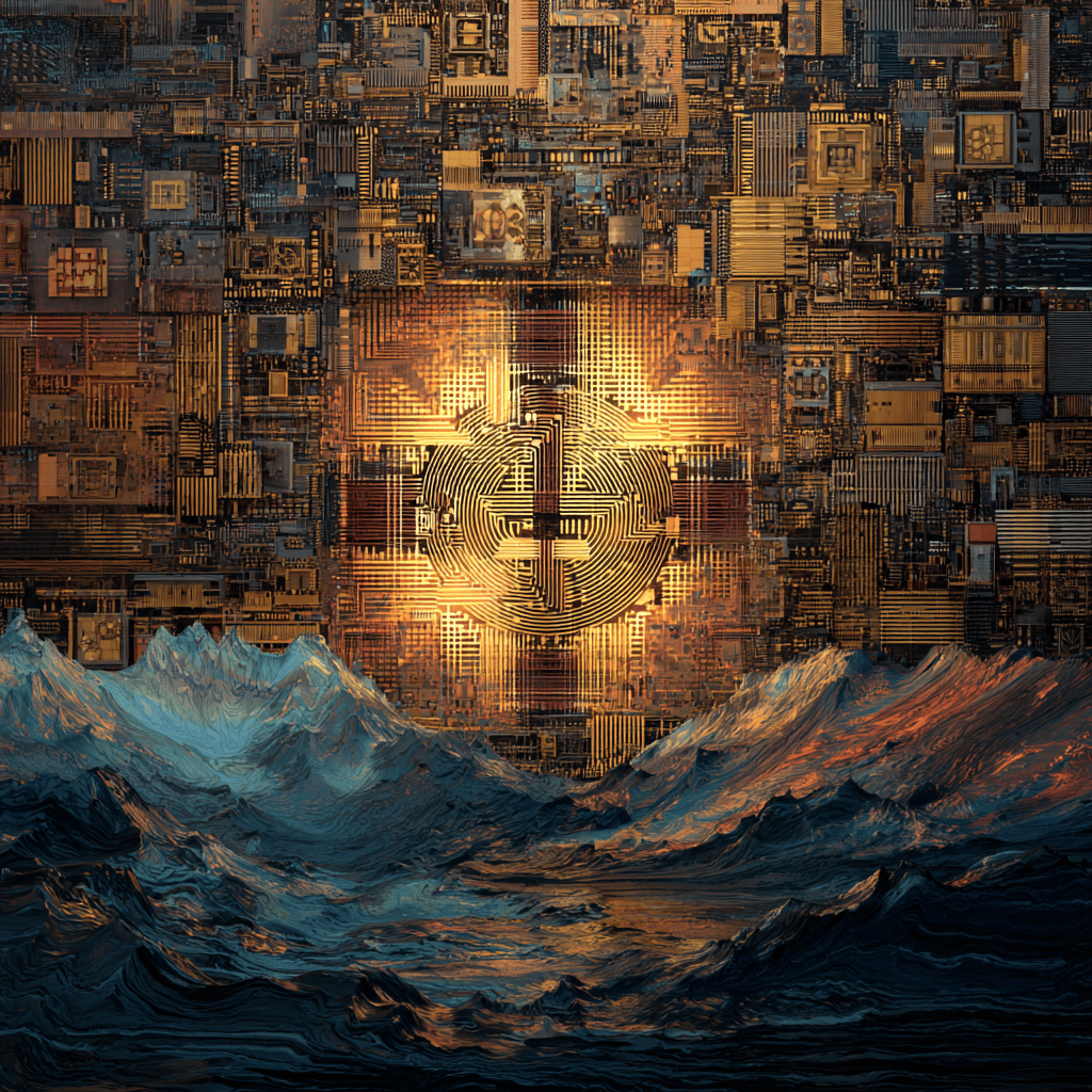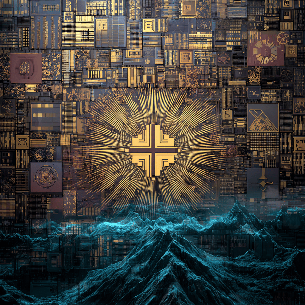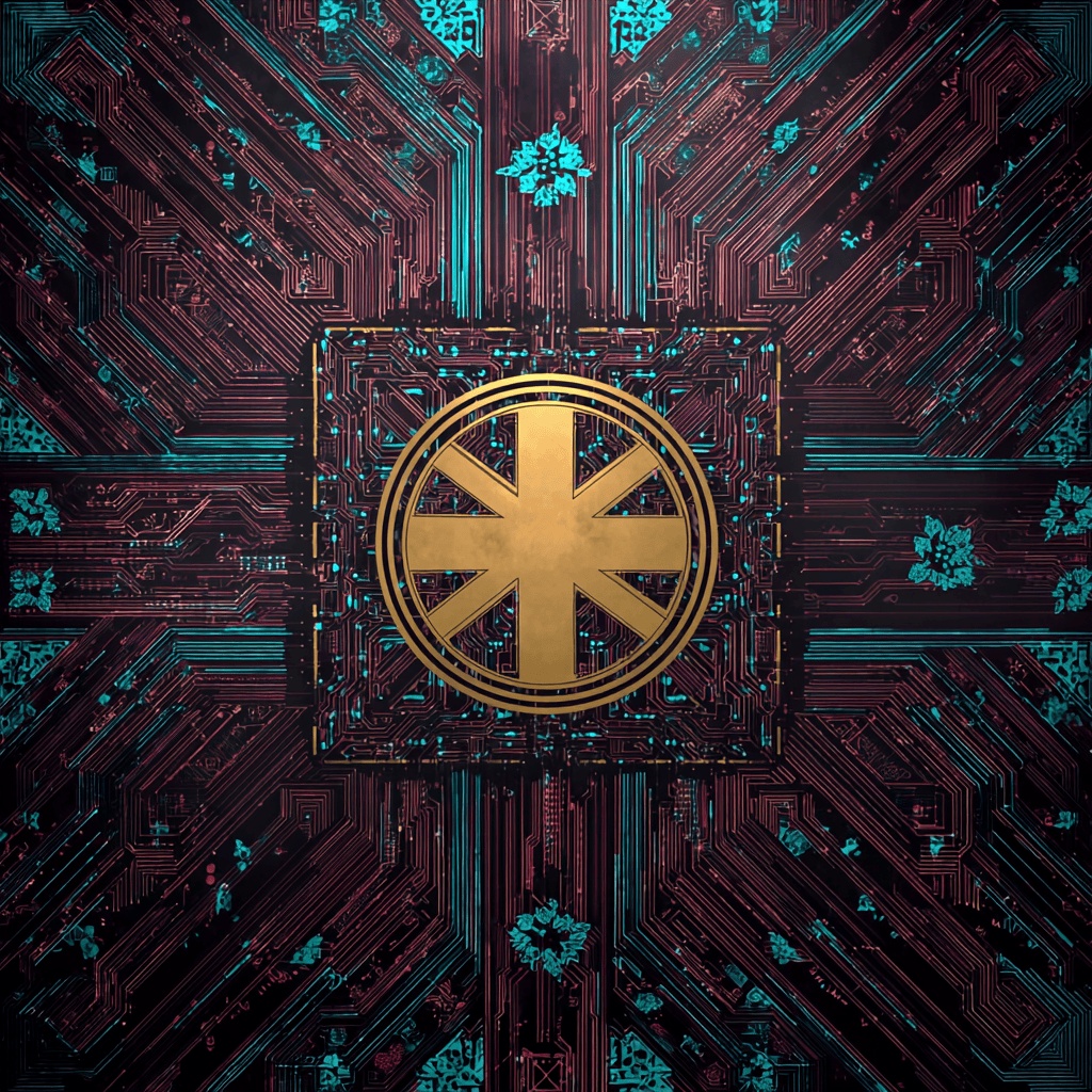 Gold circuits weave the sun’s secret — eternity encoded in light.