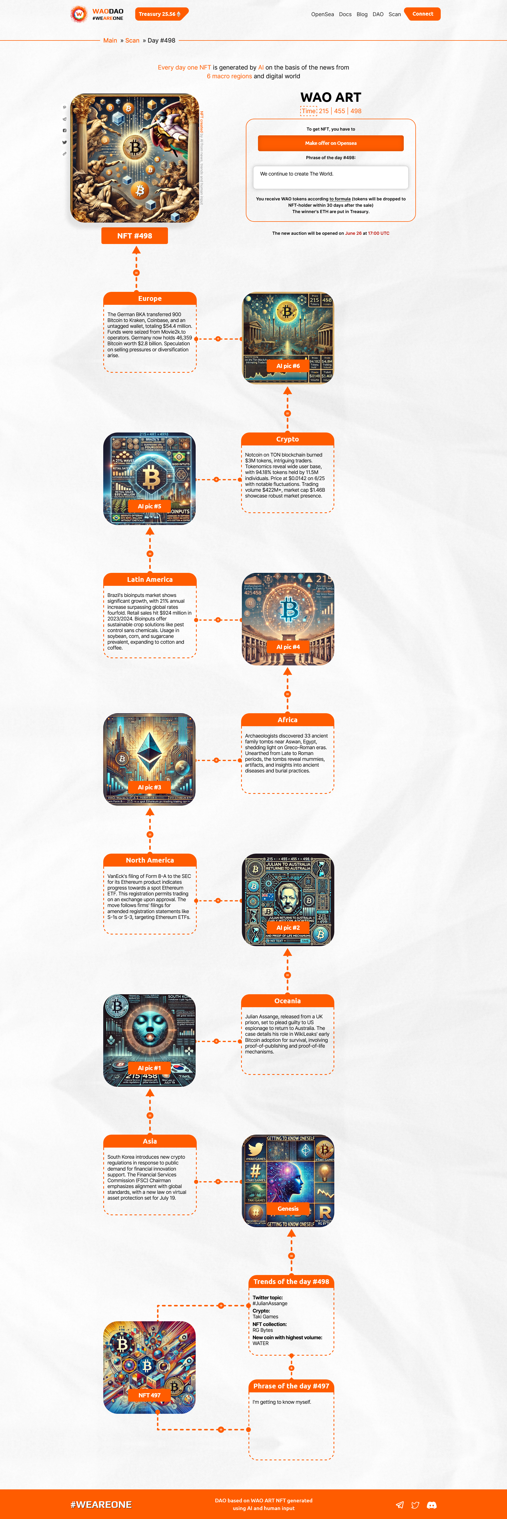 Every day one NFT is generated by AI on the basis of the news from 6 macro regions and digital world