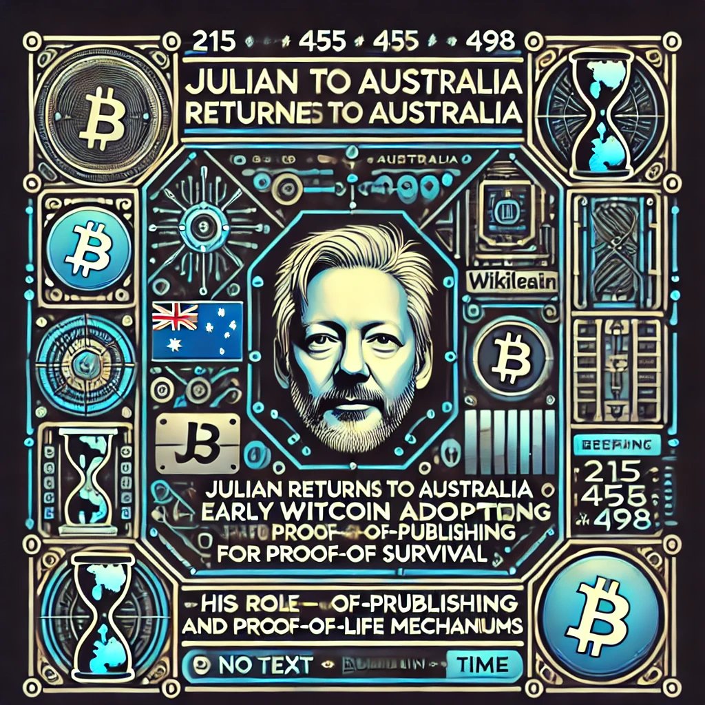Julian Assange, released from a UK prison, set to plead guilty to US espionage to return to Australia. The case details his role in WikiLeaks' early Bitcoin adoption for survival, involving proof-of-publishing and proof-of-life mechanisms.
