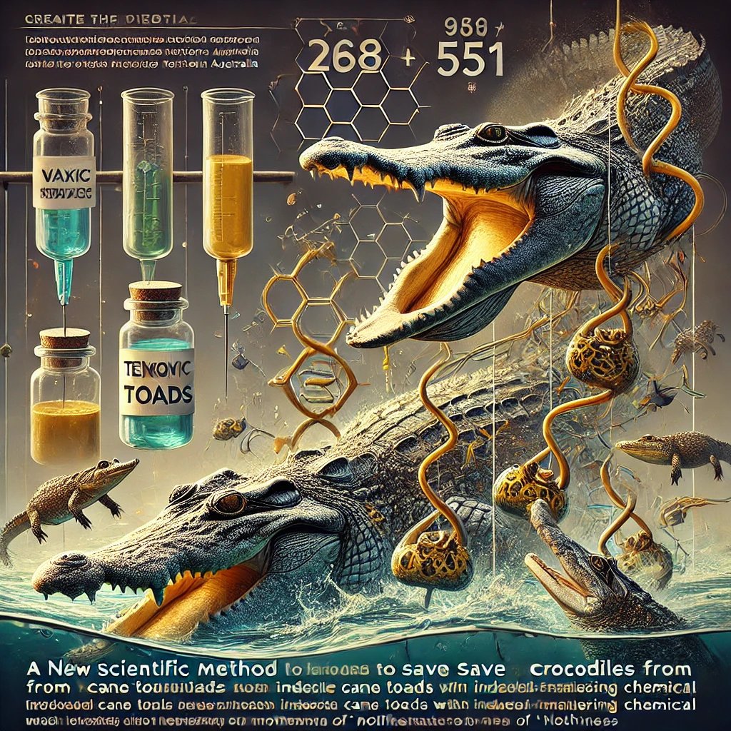Scientists have developed a method to save freshwater crocodiles from toxic cane toads in northern Australia using doctored cane toad carcasses. By inducing temporary sickness in crocs through a nausea-inducing chemical, they taught them to avoid cane toads, reducing death rates by at least 95%.