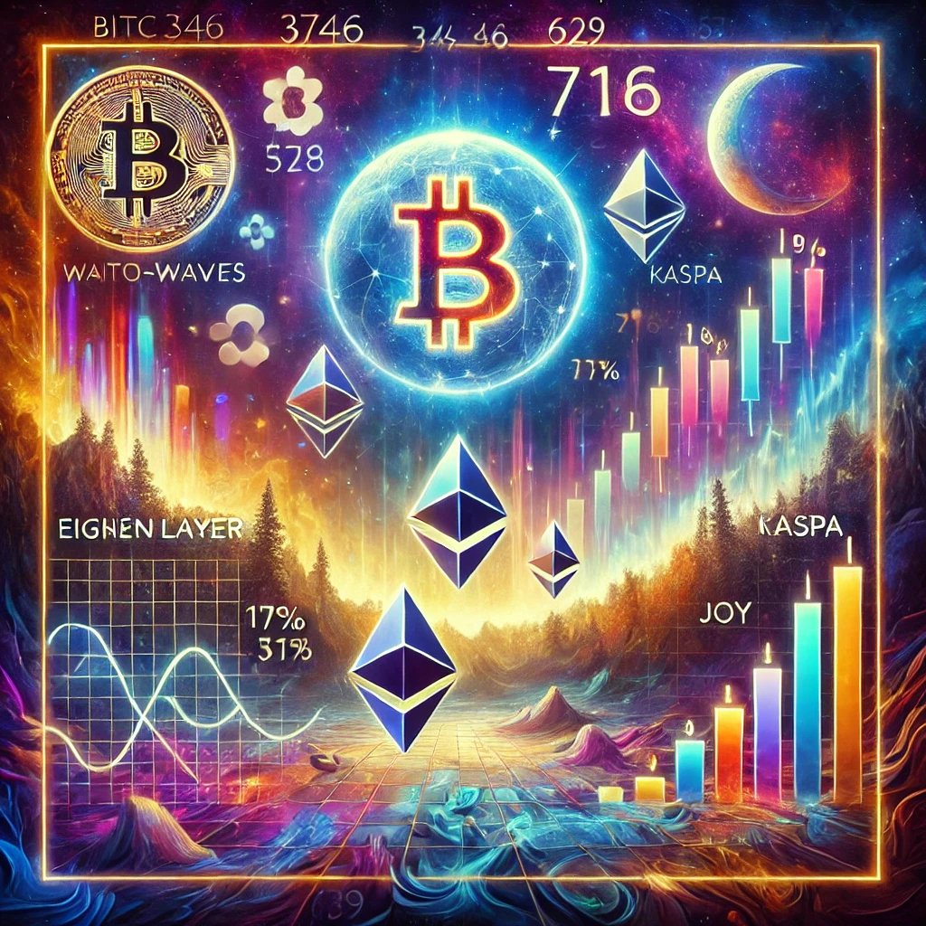 Bitcoin reached a seven-month peak, retesting its all-time high above $73,000 before facing a significant correction. EigenLayer dropped 17% after an initial rise, struggling to reclaim its peak of $4.90 since its October debut. Kaspa faced a 4.4% decline, remaining below the pivot level of $0.2592.