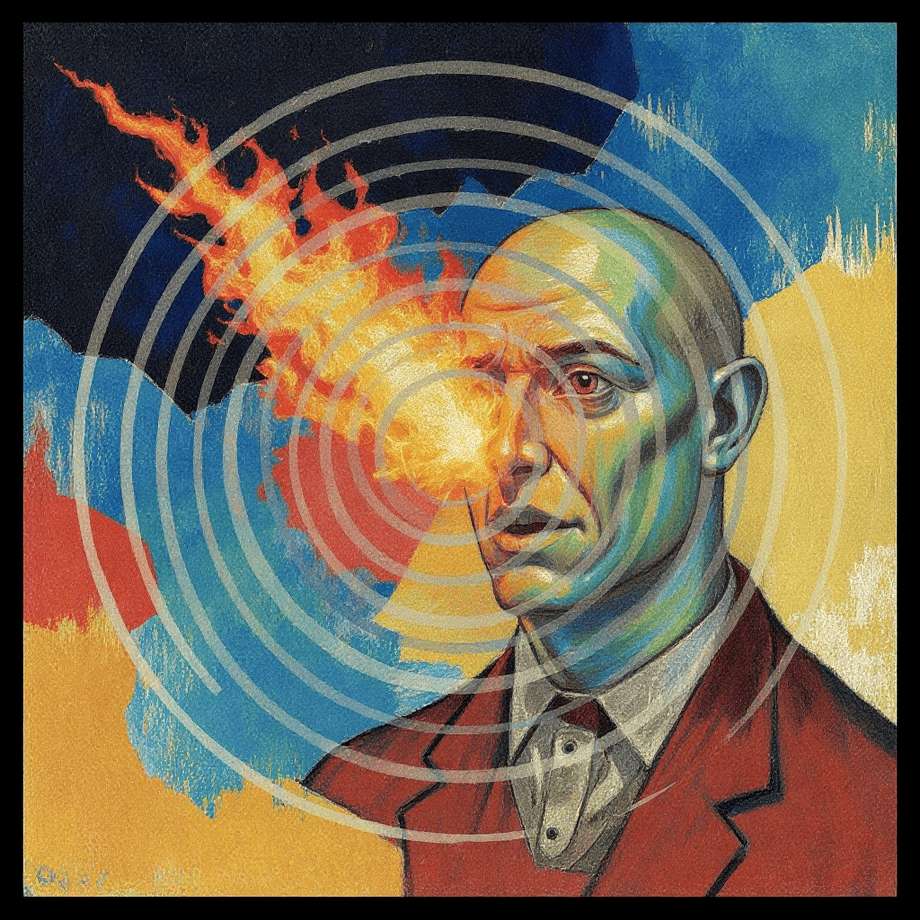 Neon flames flicker, a cipher burns through the glass — code becomes a spark.