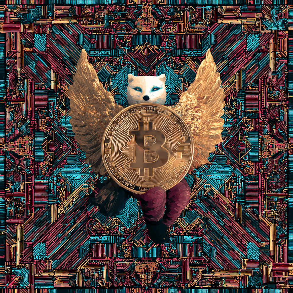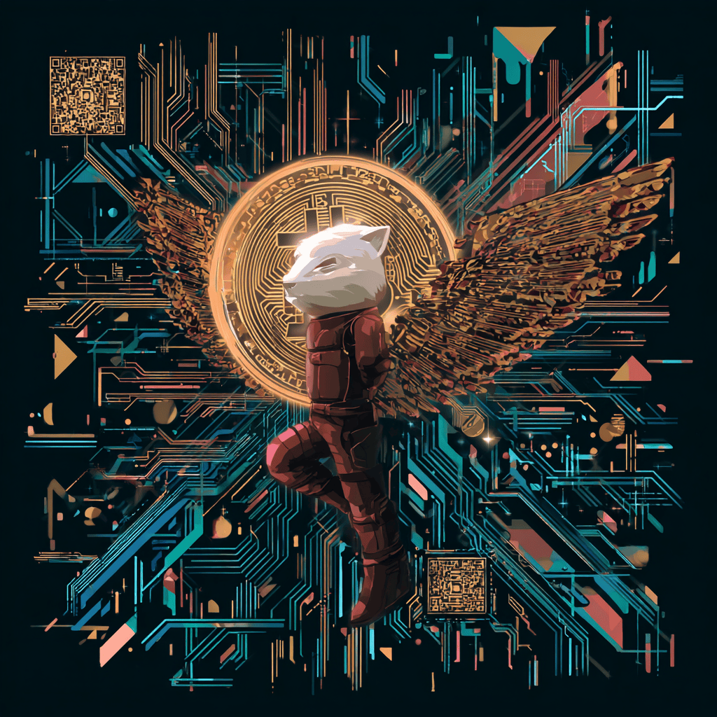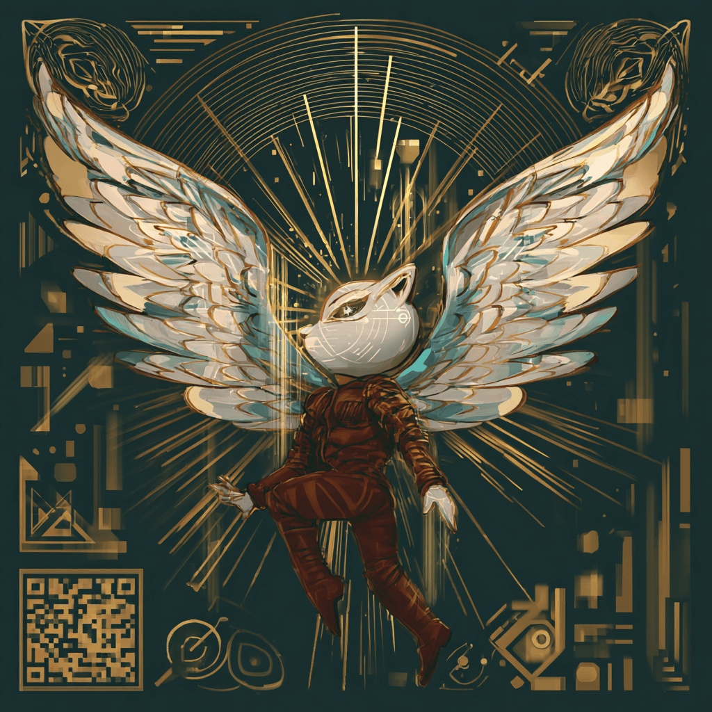 A winged soul reaches through coded light — where faith, data, and freedom intertwine.